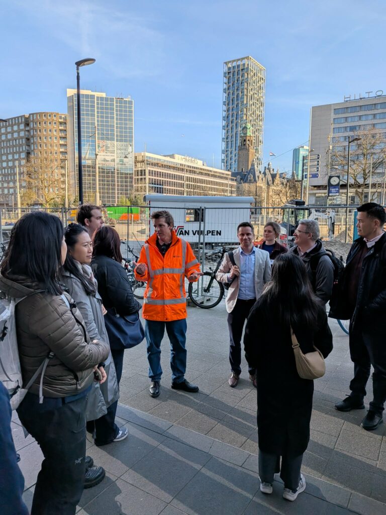 To see policy in action, we toured the Rotterdam–The Hague metropolitan area by public transport. We concluded in Rotterdam with a visit to the Hofplein construction site, the city’s newest climate-resilient public square project.
