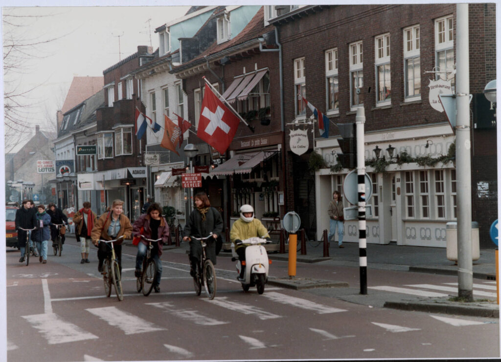 It may be interesting to realize that professionals and cycling advocates took study tours to Dutch cities focused on cycling planning from the 1970s onwards. The demand was such that in 1997, the Dutch Cyclists’ Union Fietsersbond published the booklet “Cycling in Dutch Cities – Ten Excursions in the Netherlands.” Tilburg is one of the ten cities described in this booklet, and the red cycle path is the first feature discussed and explained.