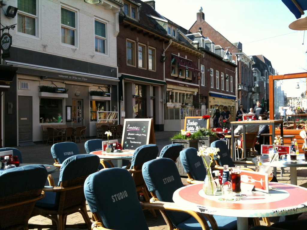 In this study tour, you will learn how this iconic cycle path has changed over the years, how different people in the city had different views on the use of space, and how the route continues to be adapted to changes in the city. Some sections of the cycle path have remained almost identical over the decades. In other places, changes have been made. Take Korte Heuvel as an example: a cozy street with bars, restaurants, and a row of terraces.