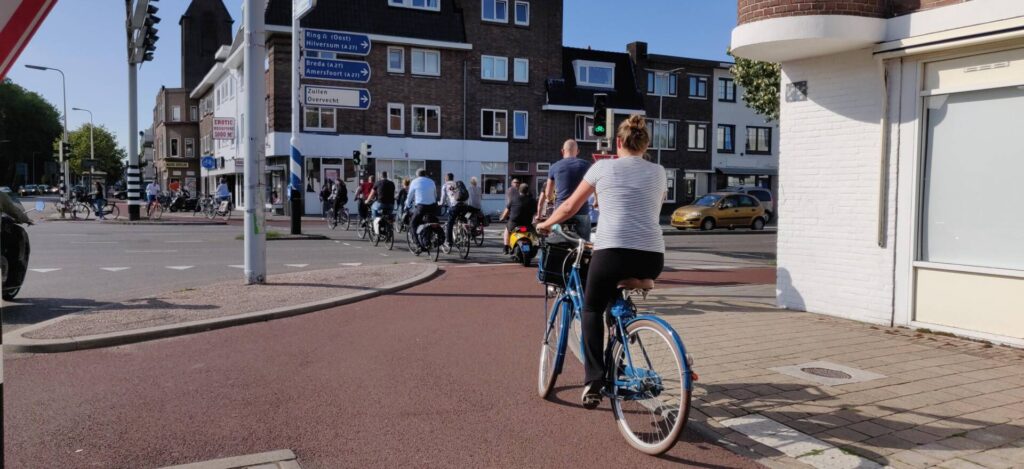 The first thing about traffic signals in the Netherlands is that there generally aren’t as many traffic signals in the Netherlands as there are in most other countries. Network planning in the Netherlands often focuses on accommodating a ‘slow but steady’ flow on main roads (a planning principle known locally as LARGAS), which can avoid the need for traffic signals in the first place. Configurations with a single vehicle lane per direction are preferred, allowing solutions such as zebra crossings, bicycle crossings with or without priority, and roundabouts. This reduces delays and stops for cyclists and other road users while still maintaining capacity and allowing safe crosspaths (see Mobycon Academy Short for an example). In addition, over the last decades, local authorities in the Netherlands have systematically converted many signalized intersections into roundabouts with separated cycle paths, as this design proved to provide higher safety, better flow, and lower maintenance costs.