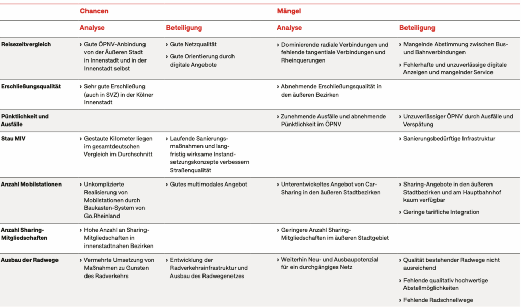 The first stage showed: in Cologne, a wide variety of voices and perspectives come together – administration, associations, and citizens of all ages have had their say. The (literally award-winning) participation process for the mobility plan was clearly more than a formality: it was comprehensive, broad-based, and well coordinated. In recognition of this practical approach, Cologne received the “Good Citizen Participation” award from the Competence Centre for Citizen Participation e. V. in October 2024. The extent to which the contributions from the participating target groups have been incorporated into the mobility planning is evident in the status quo analysis. There, participation results were compared and combined with quantitative analysis, and the combined findings were directly integrated into the status quo analysis. We are also continuing this sound linkage in the second phase to derive practical measures from the strategy.